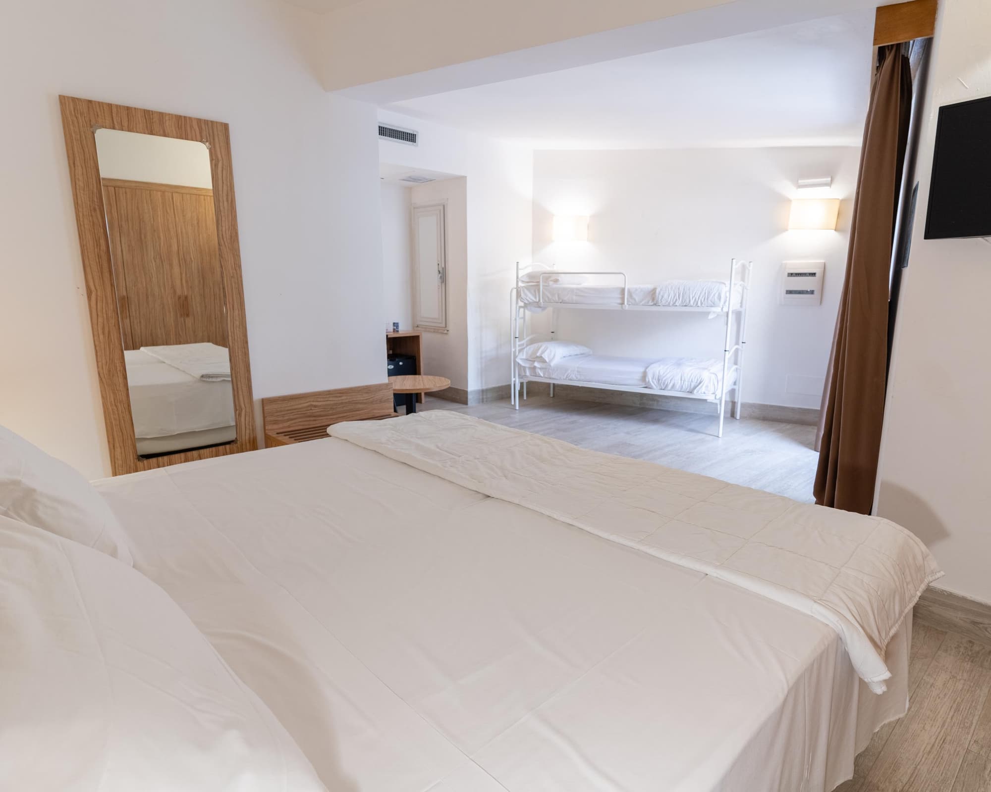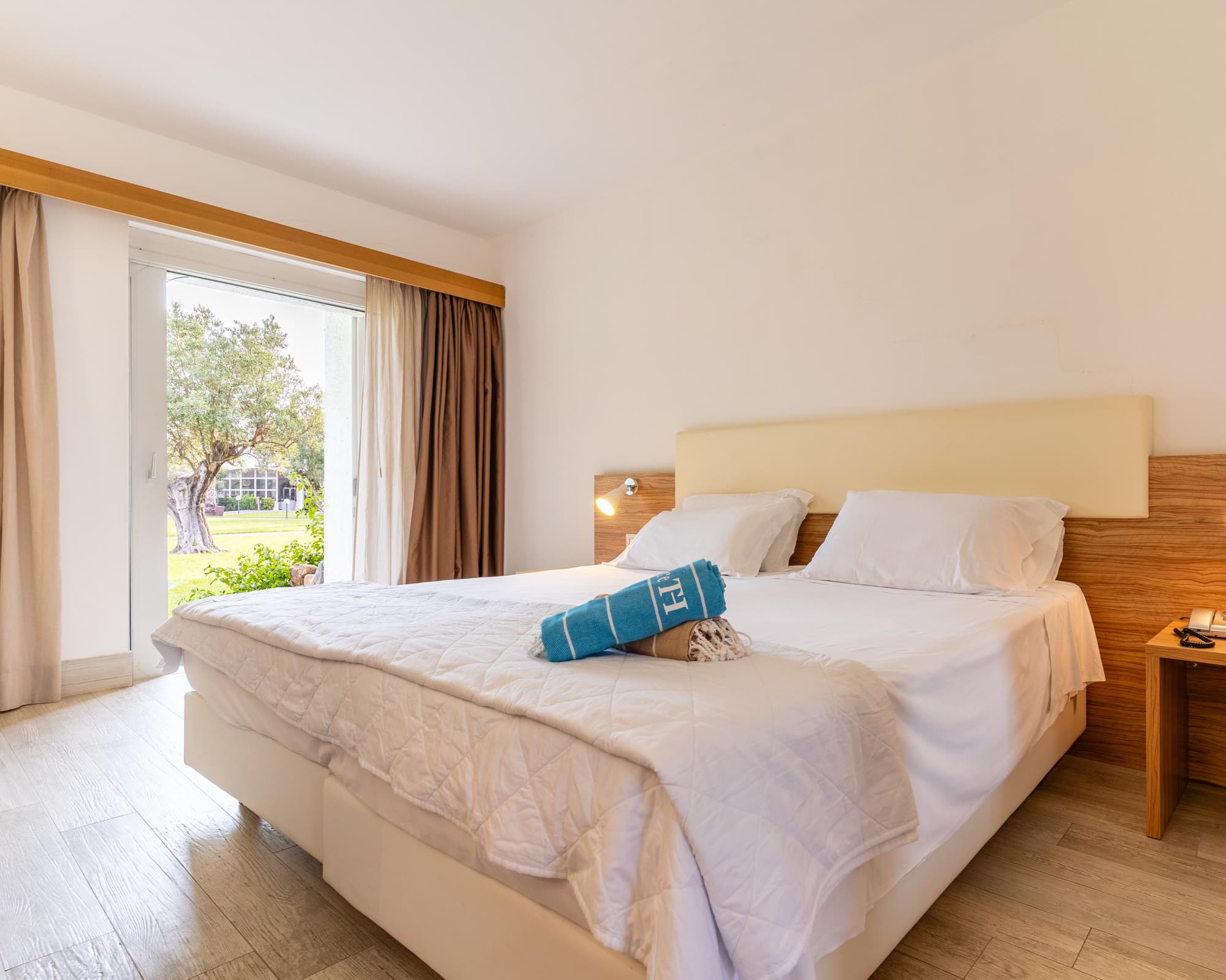La struttura dispone di 263 camere interamente rinnovate in stile moderno ed elegante, dotate di aria condizionata, frigobar (riempimento su richiesta a pagamento) e TV. Sono suddivise in Classic (doppie, triple e quadruple con letto a castello) e Garden (doppie e triple).
